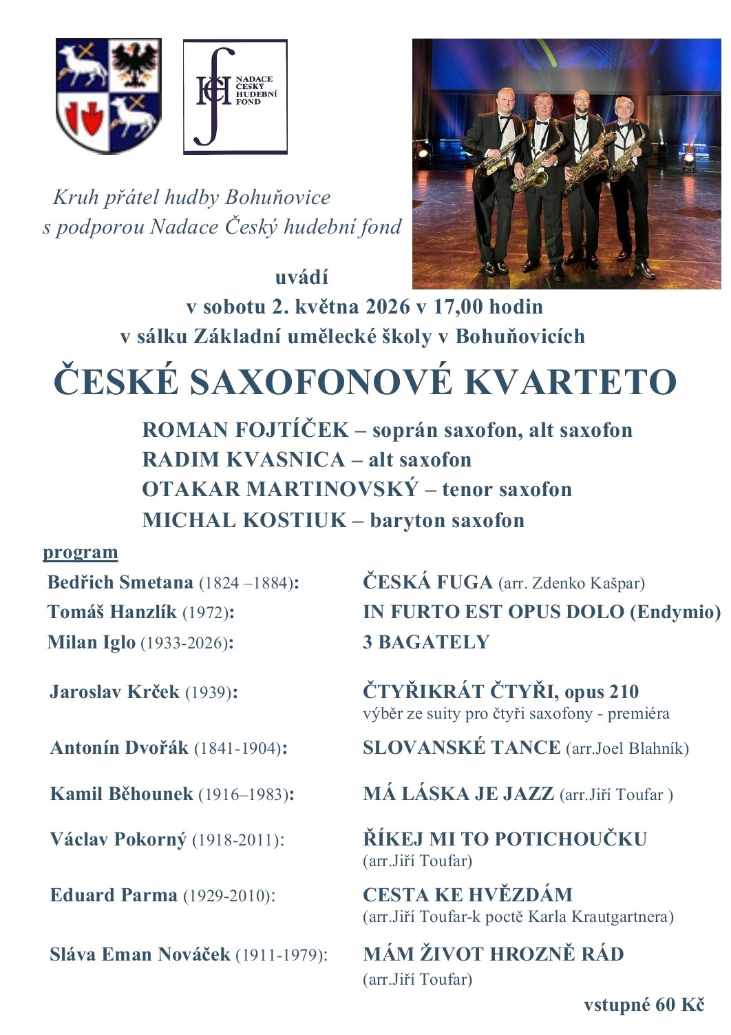 ČESKÉ SAXOFONOVÉ KVARTETO vystoupí